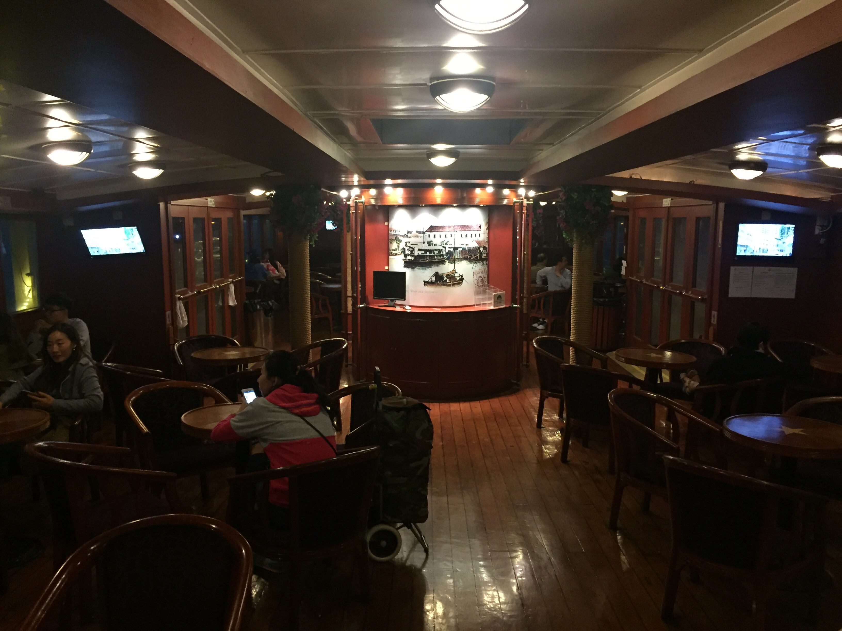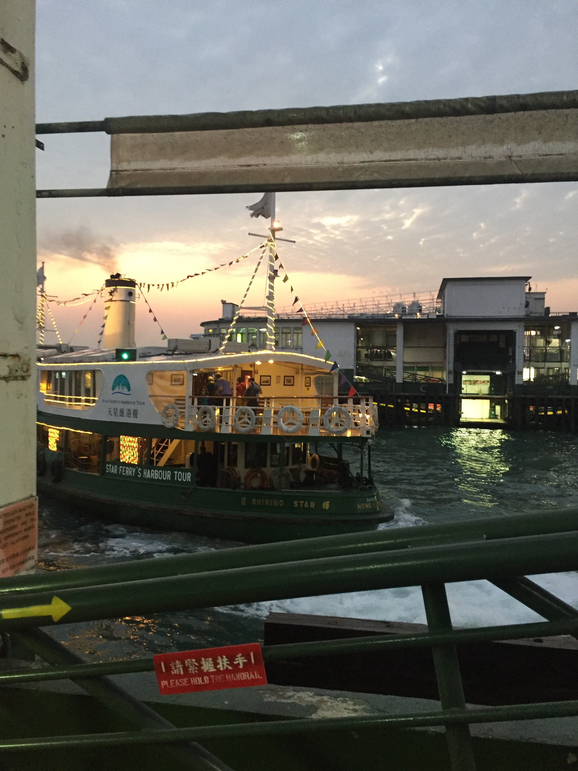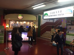 Located on the pier closest to the taxi rank, the ticket office for Star Ferry’s Harbour Tour is located in the far left corner of the building beside the stairs which lead to the ferrys themselves. We arrived 30 minutes before the 6:55pm tour and there was no queue to speak of, either at the ticket office or in the small, roped-off waiting area reserved for harbour tour customers on the pier itself. The crowds did start to gather about 10 minutes prior to the advertised boarding time however and the crowd we passed for the 7:55pm cruise as we left was heaving, so 30 minutes before the tour was an ideal time to arrive.